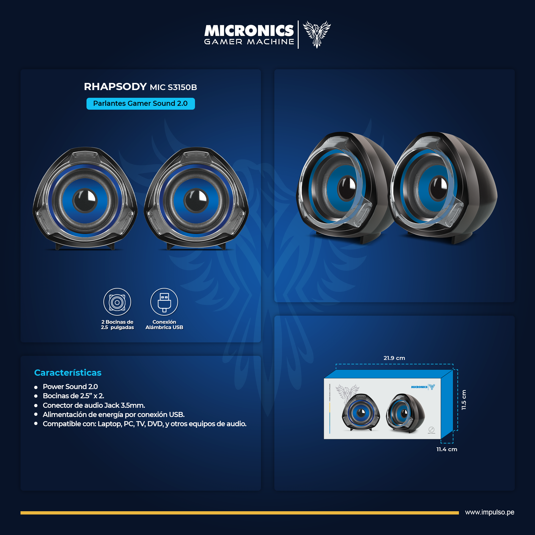 PARLANTE MICRONICS RHAPSODY BLUE MIC S315B 2.0 USB RMS:12W.