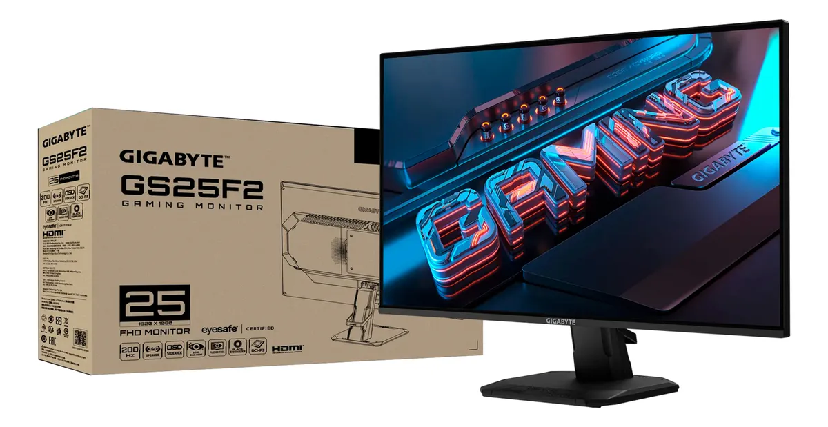 MONITOR GAMING GIGABYTE GS25F2, 24.5 FHD, SS IPS, 1920 X 1080, HDMI X2, DP X1, 1 X EARPHONE JACK, FREESYNC, 200HZ, 1MS